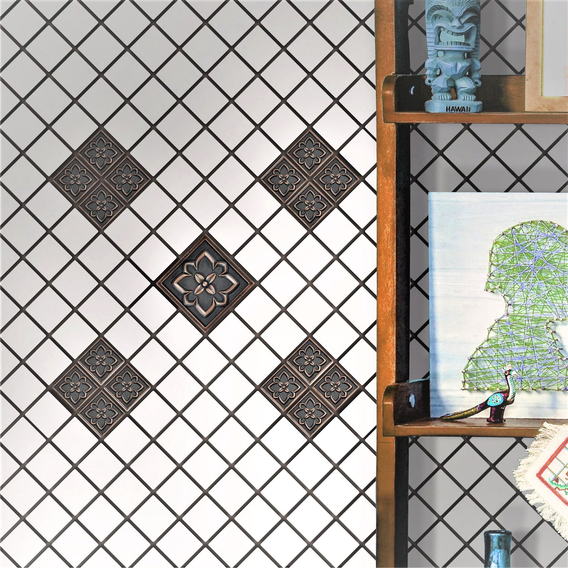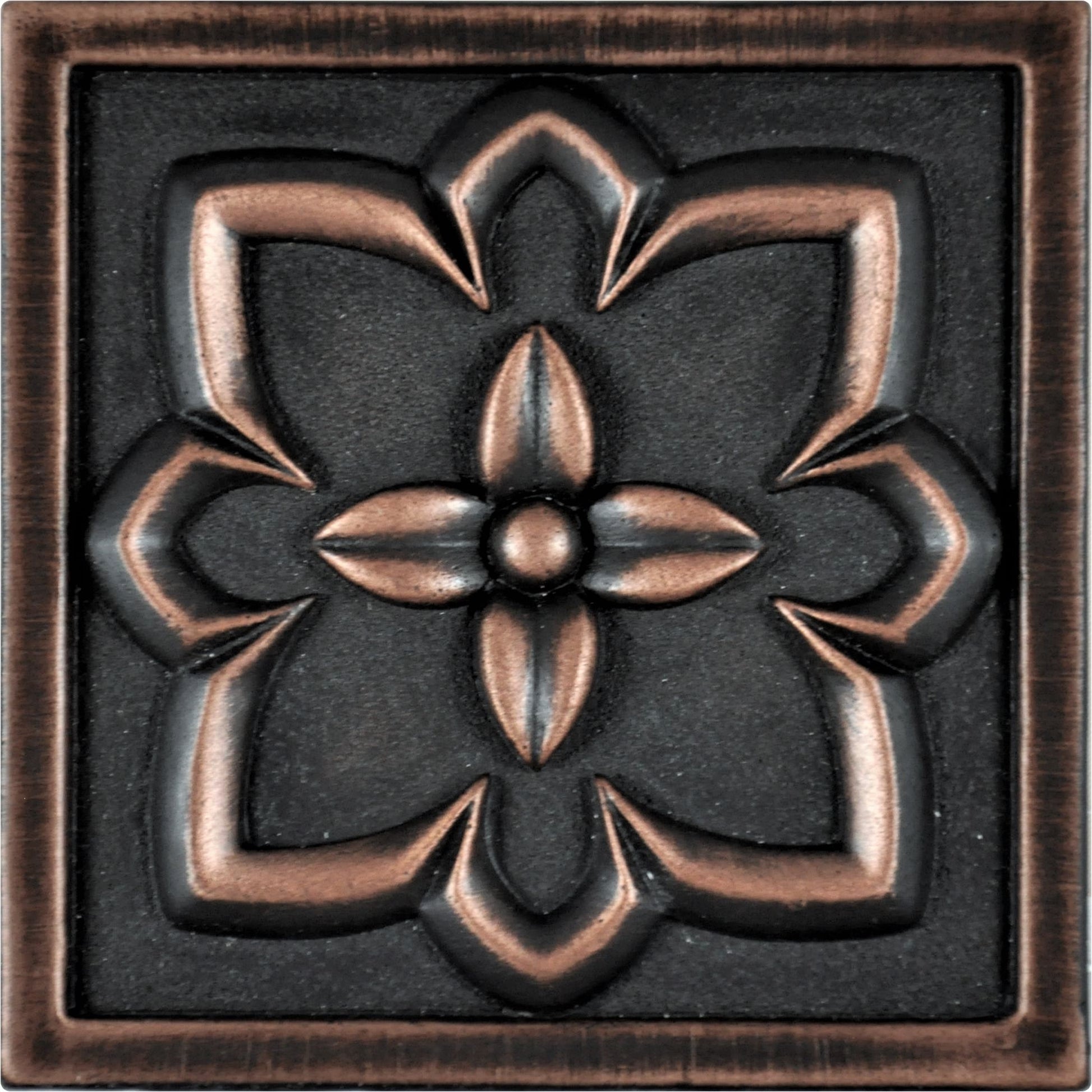 Niche Tiles Decorative Metal Insert Collection is ideal for creating a traditional look with a modern twist. This masterpiece provides you to create timeless decoration in your home. Nice Tiles Metal Insert Tile Collection can be installed fire place and behind the Owen/place over stovetop of as backsplash tile and also shower area. With a wide selection of liners, decorations, and trim pieces, this collection has an extraordinary ambiance and a classic mood to fit your space. Designed to complement a variety of other lines, the Nichetiles collection includes an array of handmade metal tile designs in various finishes to be used as accent elements in the installation. Welcome to a world of finesse and of elegance. Antique Copper is also known as a "living finish". A living finish will wear over time and the darker matte surface will begin to reveal lighter, coppery highlights.